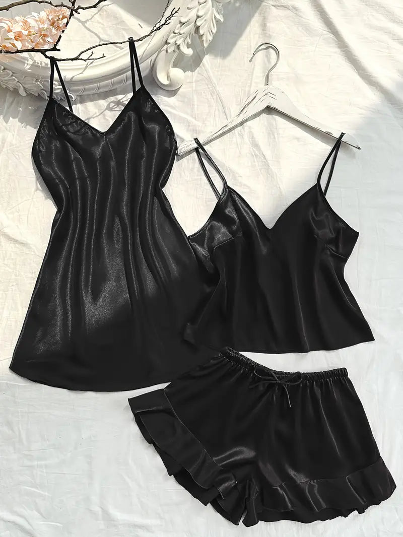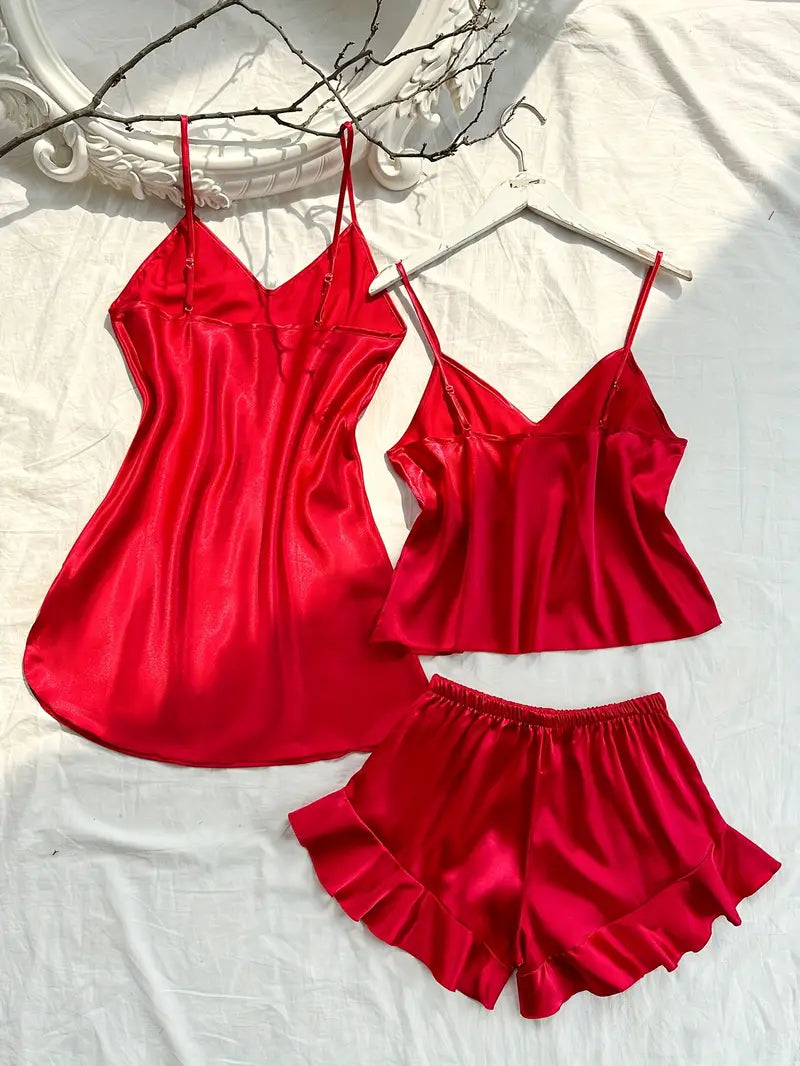 V Neck one piece with Cami Top & Flare Shorts Sleep dress, pajama set