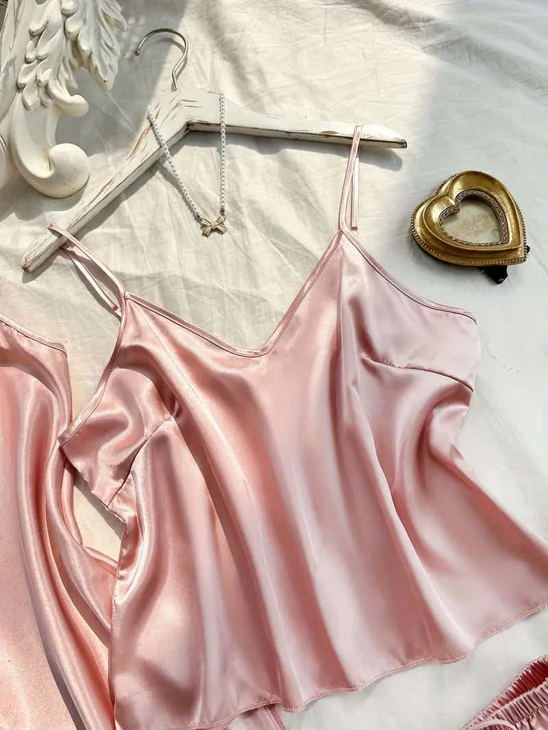 Discover Marquisa's exquisite luxurious long-sleeve belted Satin Robe, backless cami tops, and pajama sets designed for both comfort and style. Available in various sizes and colors