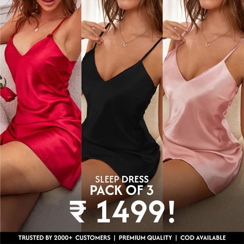 3-Pack Satin silk V Neck Sleep Dress