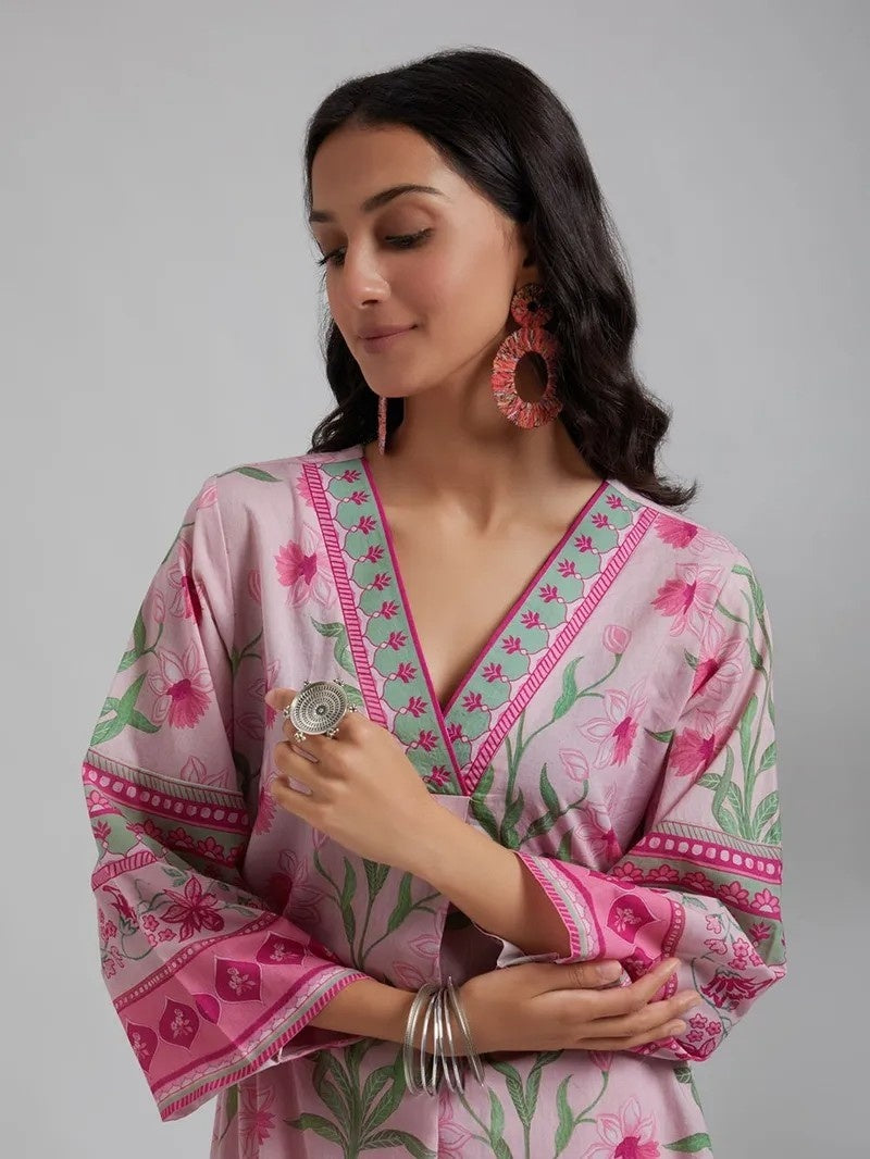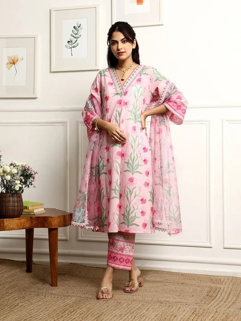 Women Floral Printed V-Neck Kurta with Trousers & Dupatta