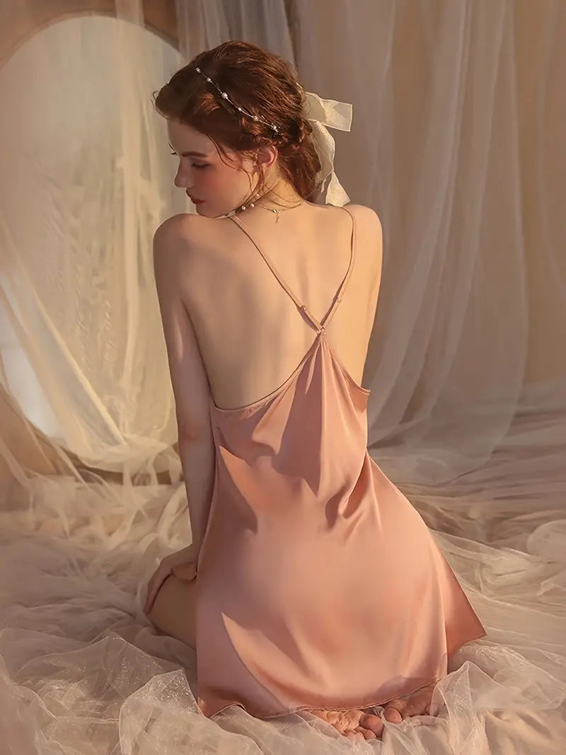 Tie Front Round Neck Criss Cross Backless Slip Dress