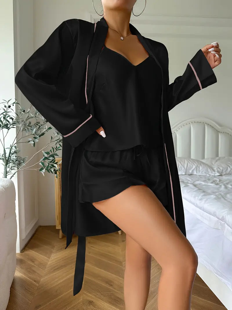 Long Sleeve Belted Robe & pajama - Top & Shorts Sleep set 3pcs