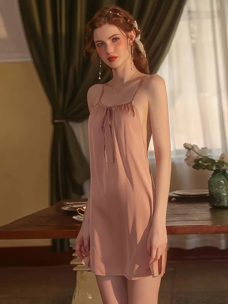 Tie Front Round Neck Criss Cross Backless Slip Dress