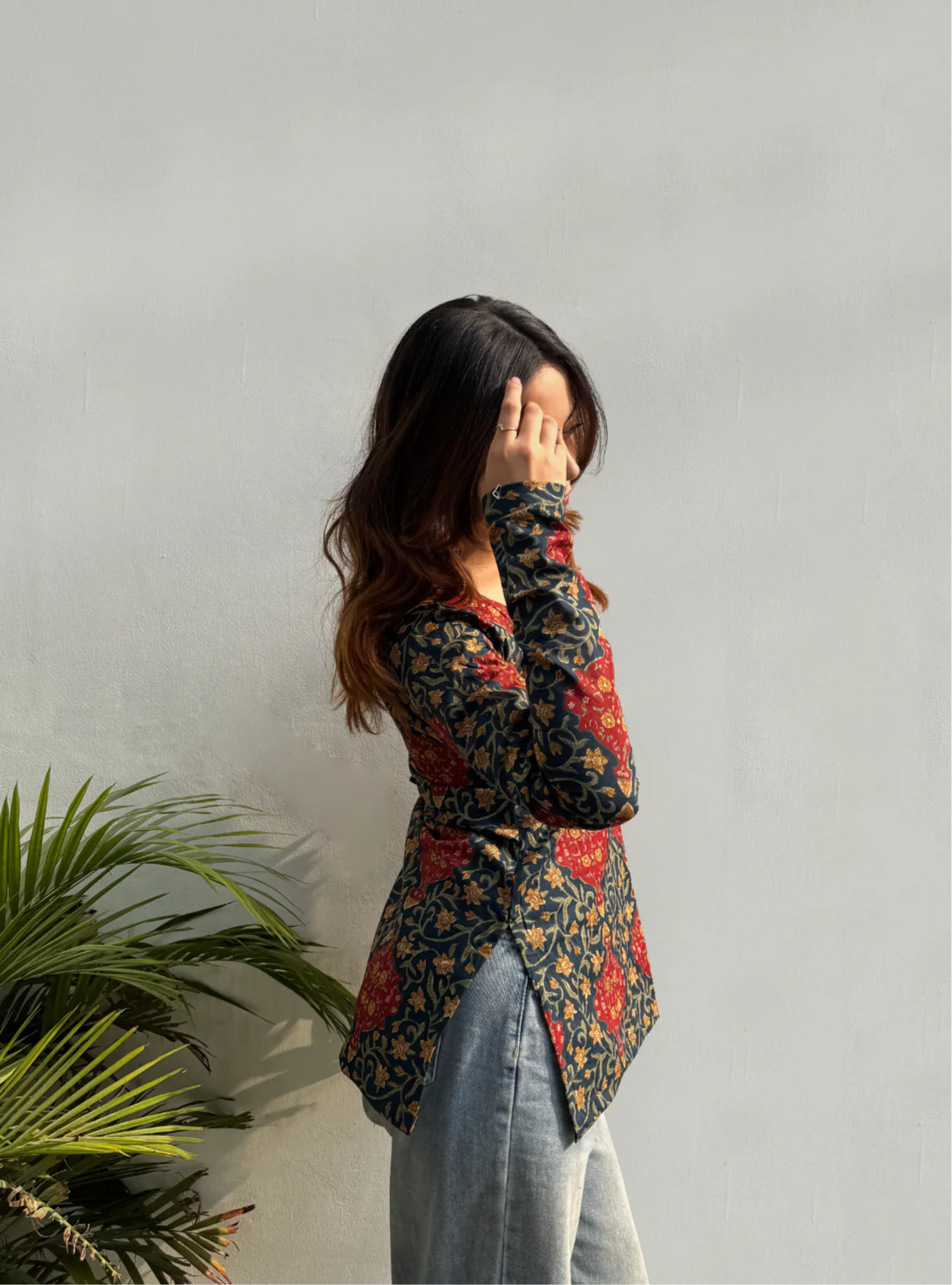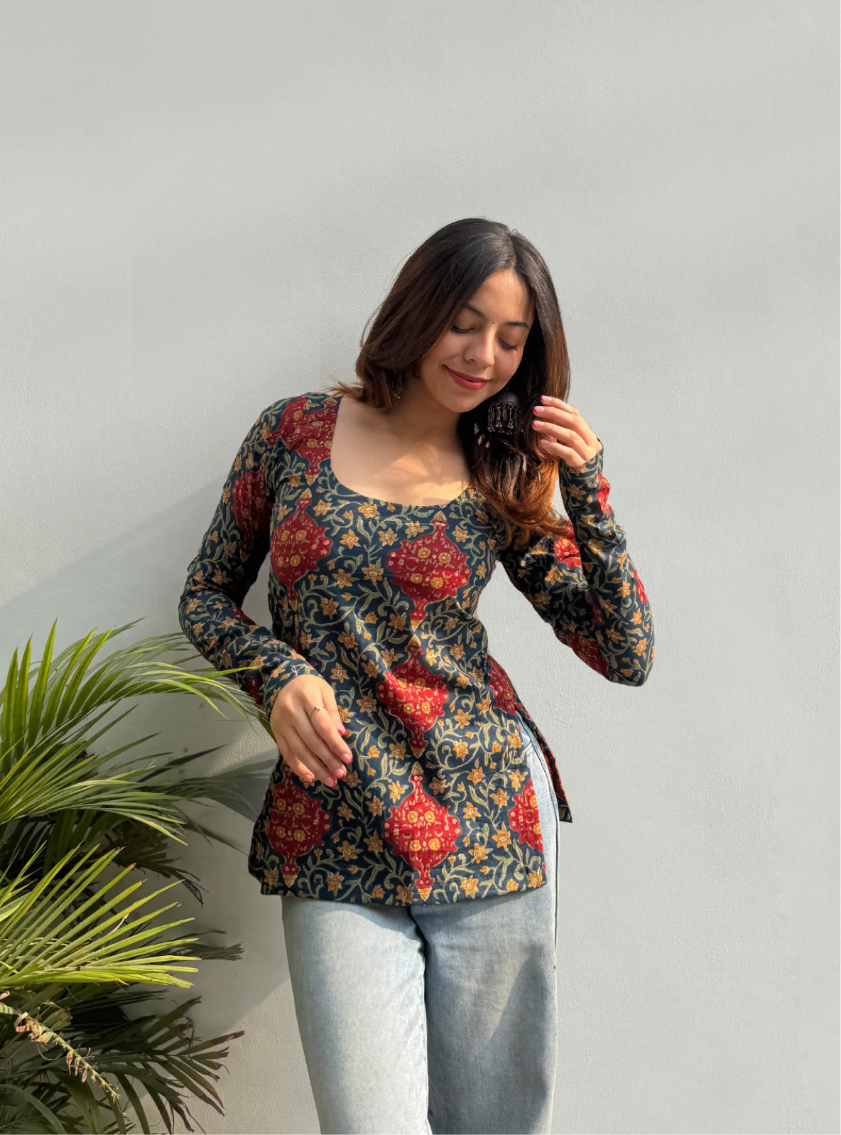 Women Blue Esthetic Flower Print Kurti