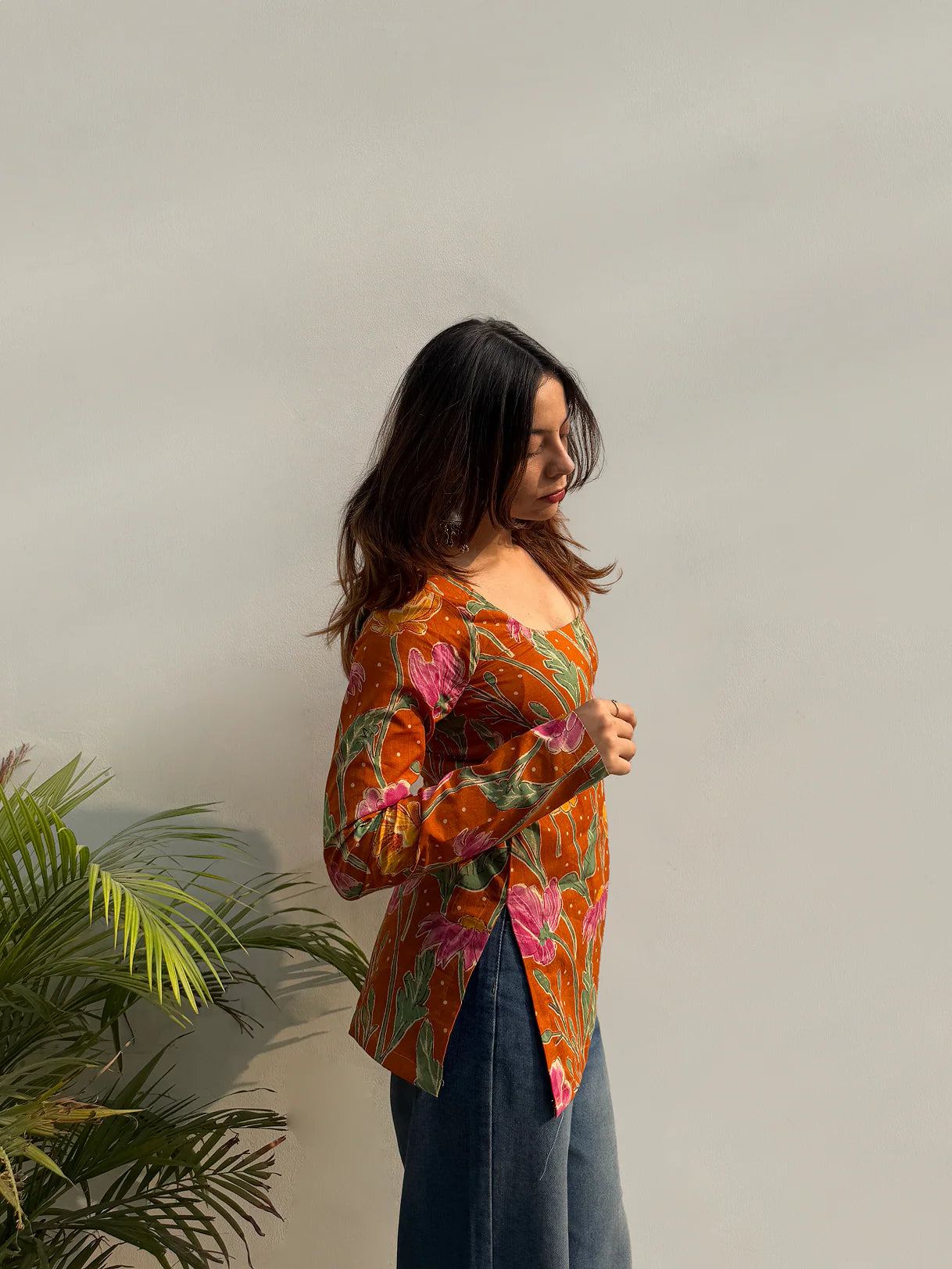 Add a touch of freshness and comfort to your daily style with this cotton floral tunic—perfect for effortless elegance, every day.