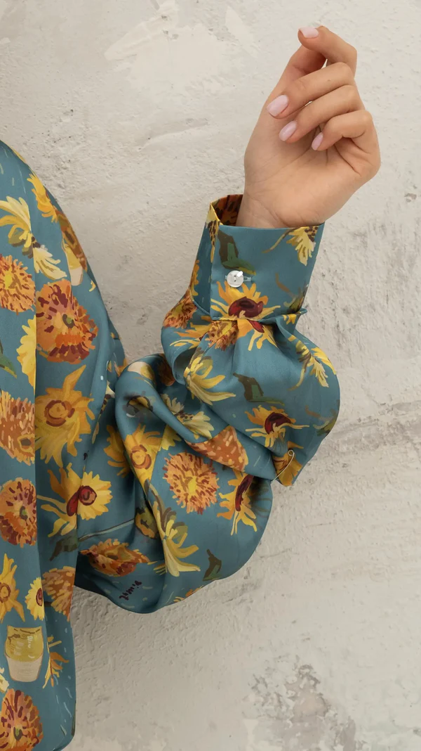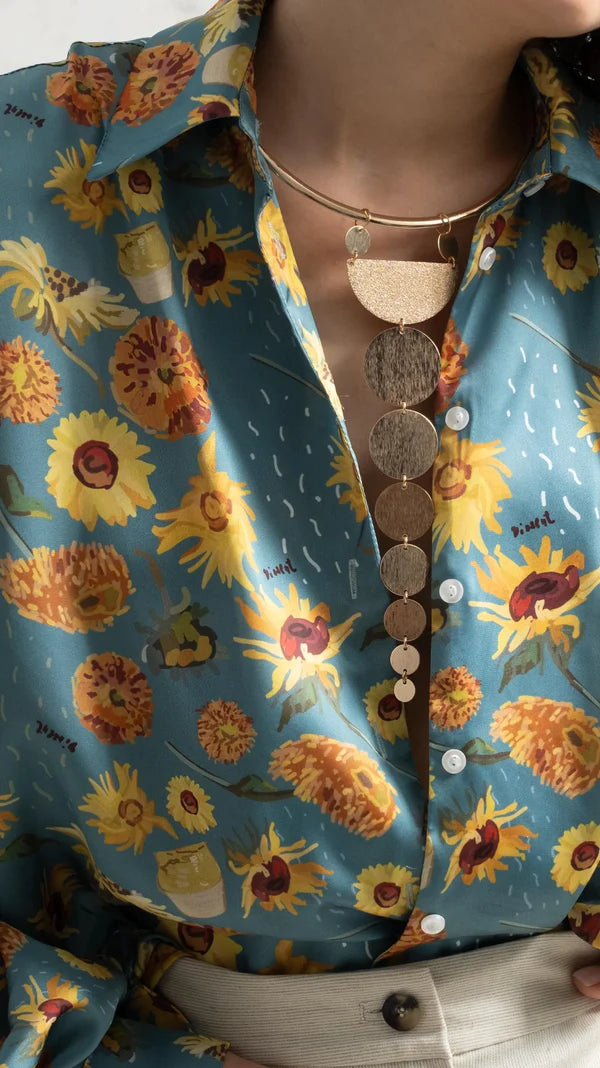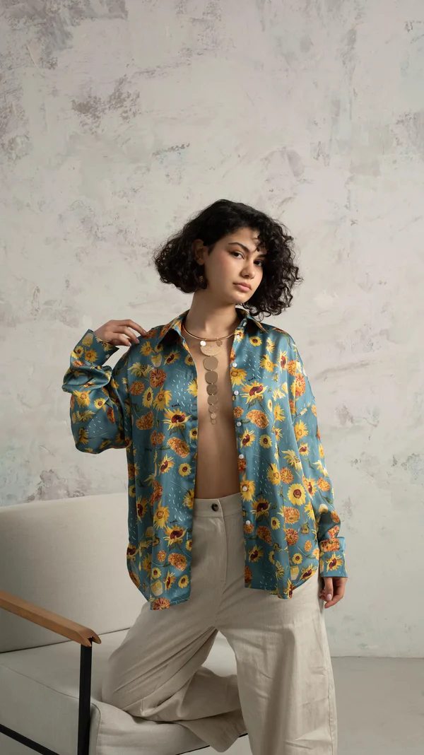 Golden Hue on Blue Sunflower Silk Touch Shirt