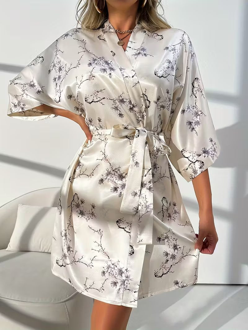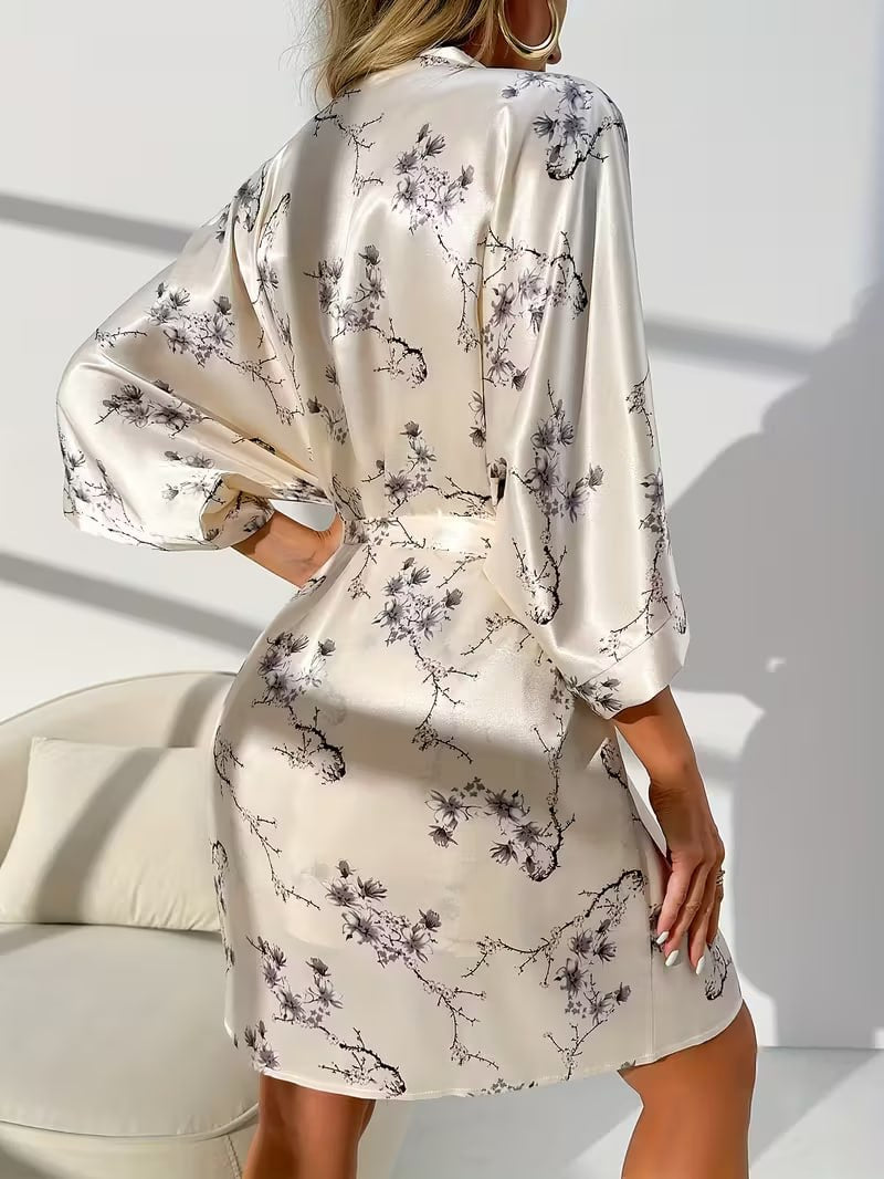 Floral Print Robe Set for Women, Off the Shoulder Nightgown with Spaghetti