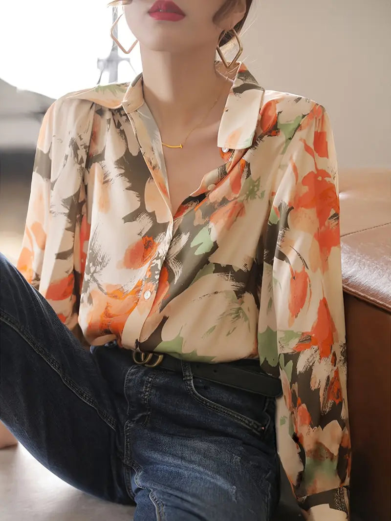 Spring & Fall Floral Ink Print Slimming Shirt